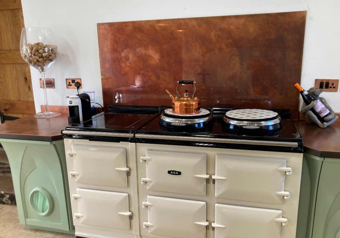 Bespoke metal splashbacks for AGA & range cookers — made to measure with seamless panels up to 3m, cut-outs